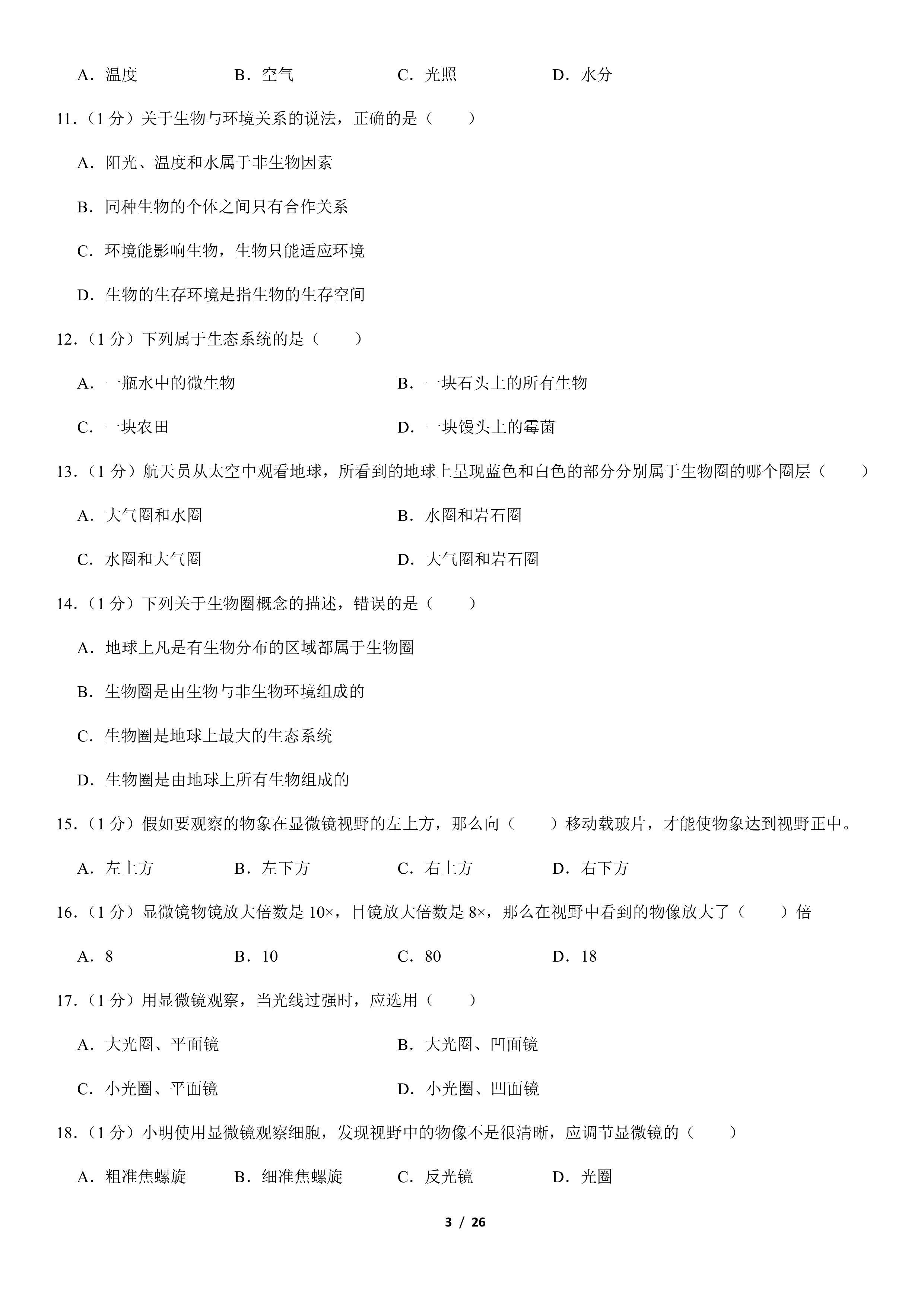 2019北京大峪中学初一(上)期中生物(教师版).pdf