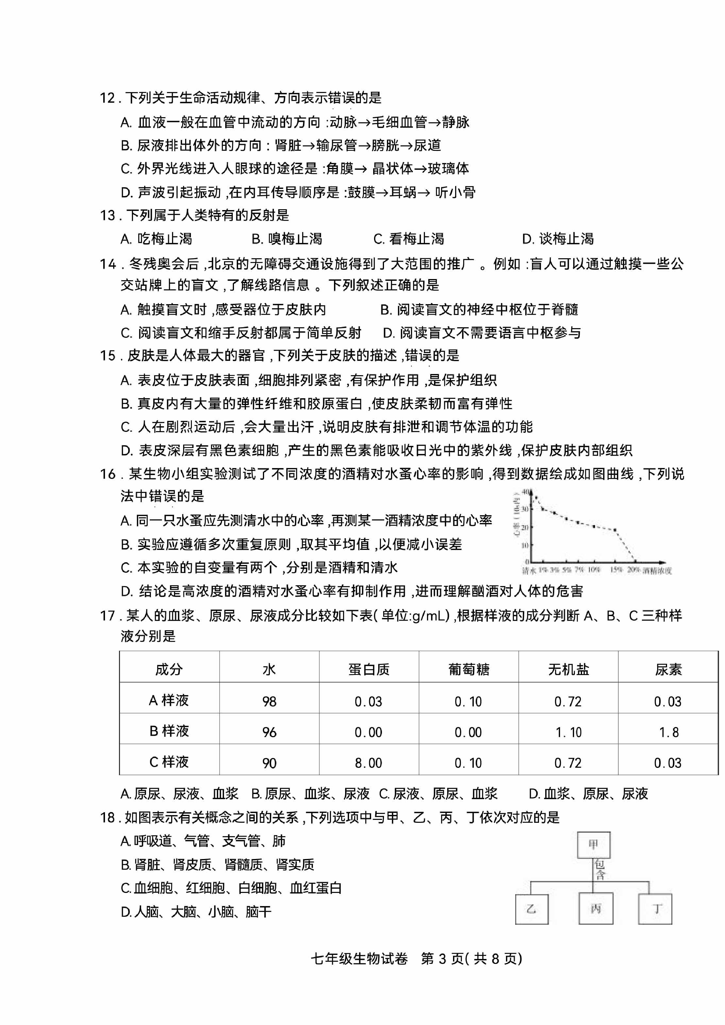 2018北京市西城区高三(上)期末生物含答案.pdf