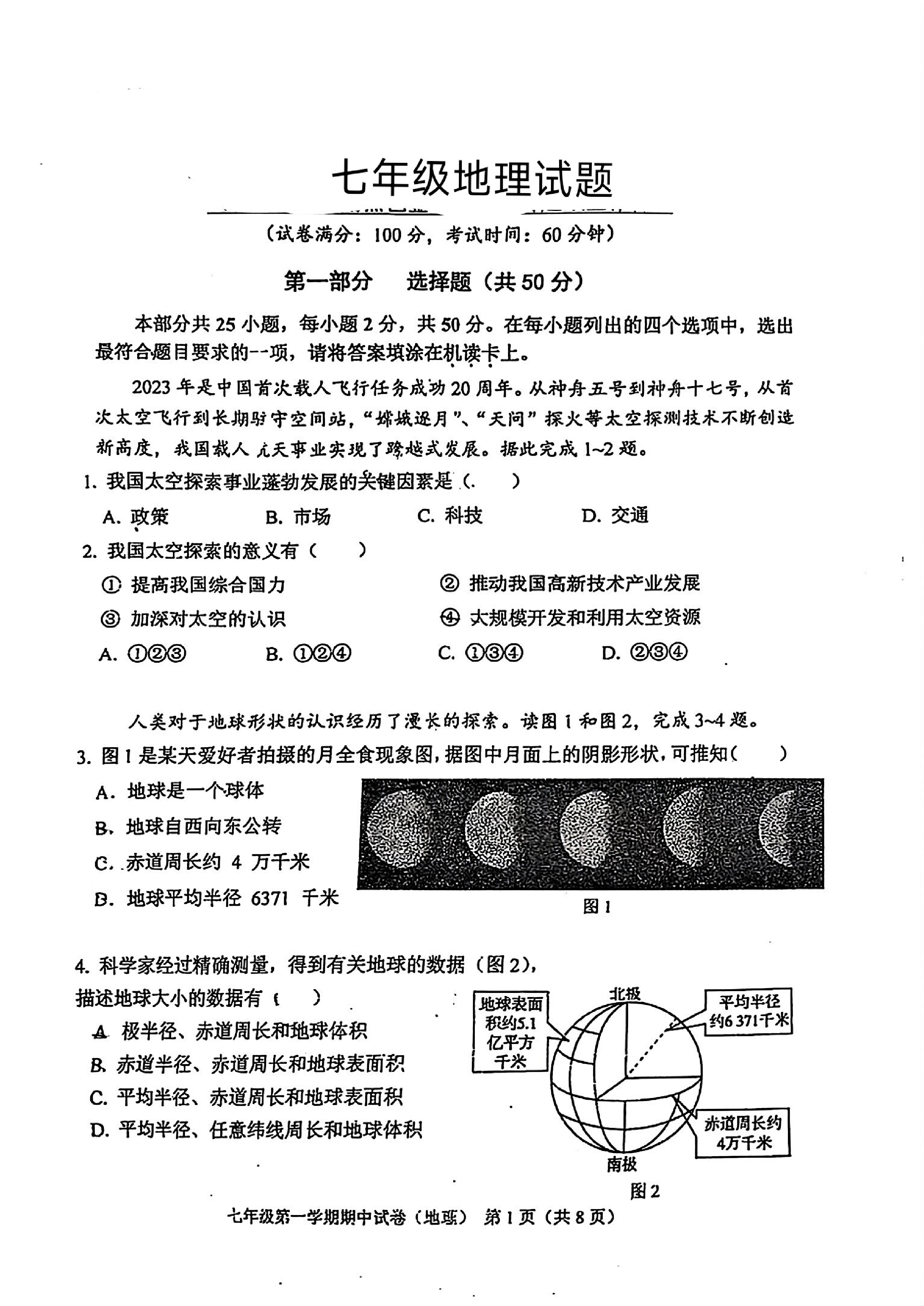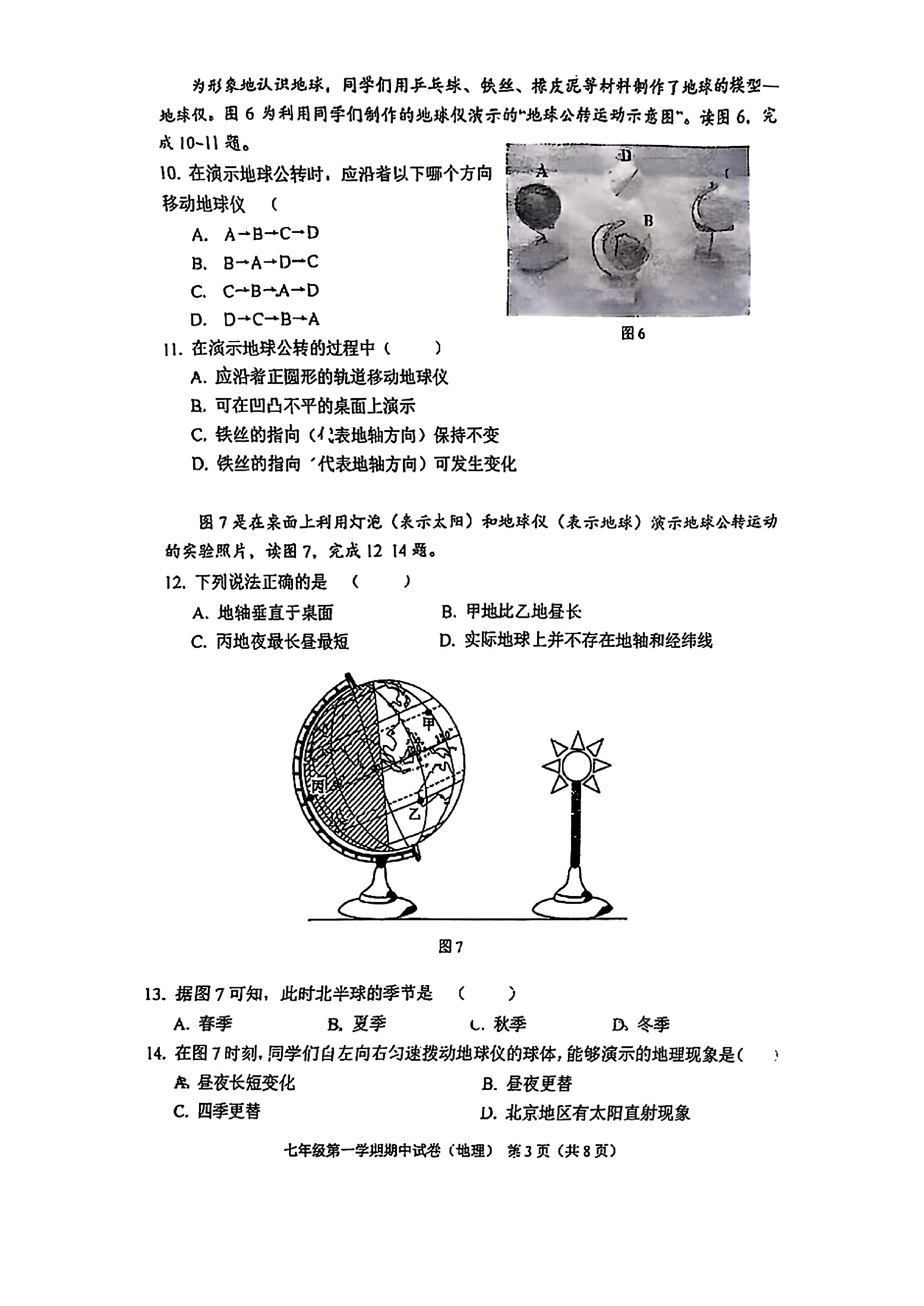 2024北京北师大二附中初一(上)期中地理(教师版).pdf